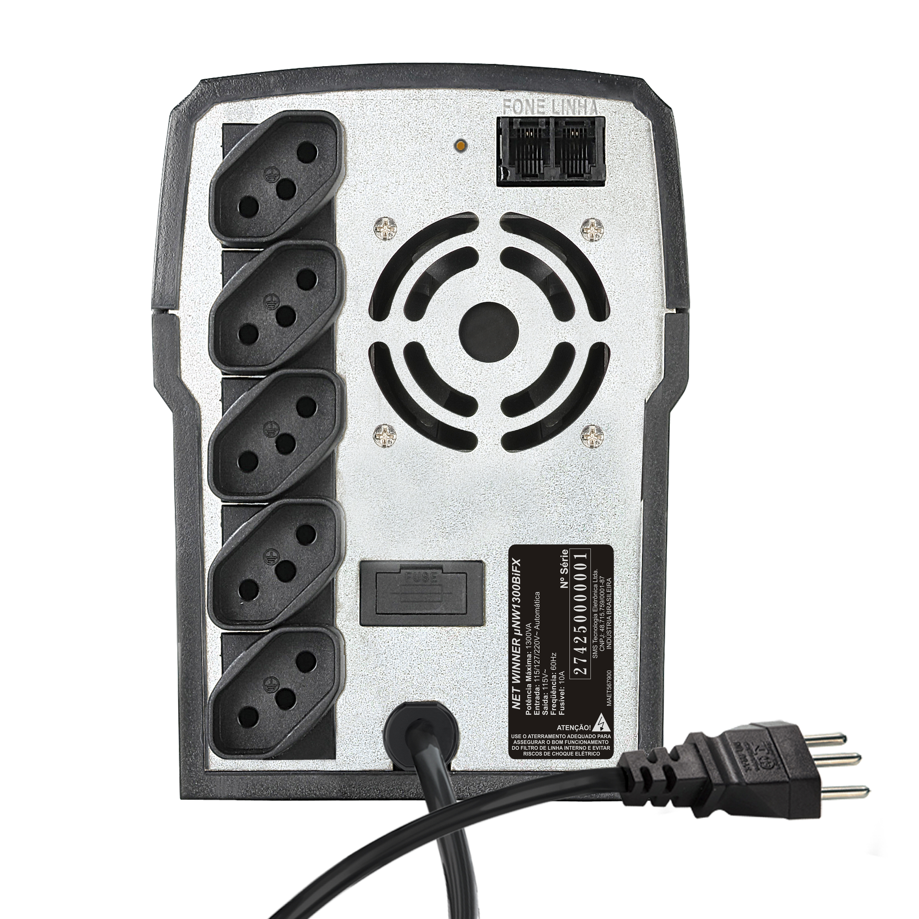 | Conexão de saída | 8 tomadas NBR 14136 (5 no painel traseiro + extensão elétrica gratuita) |