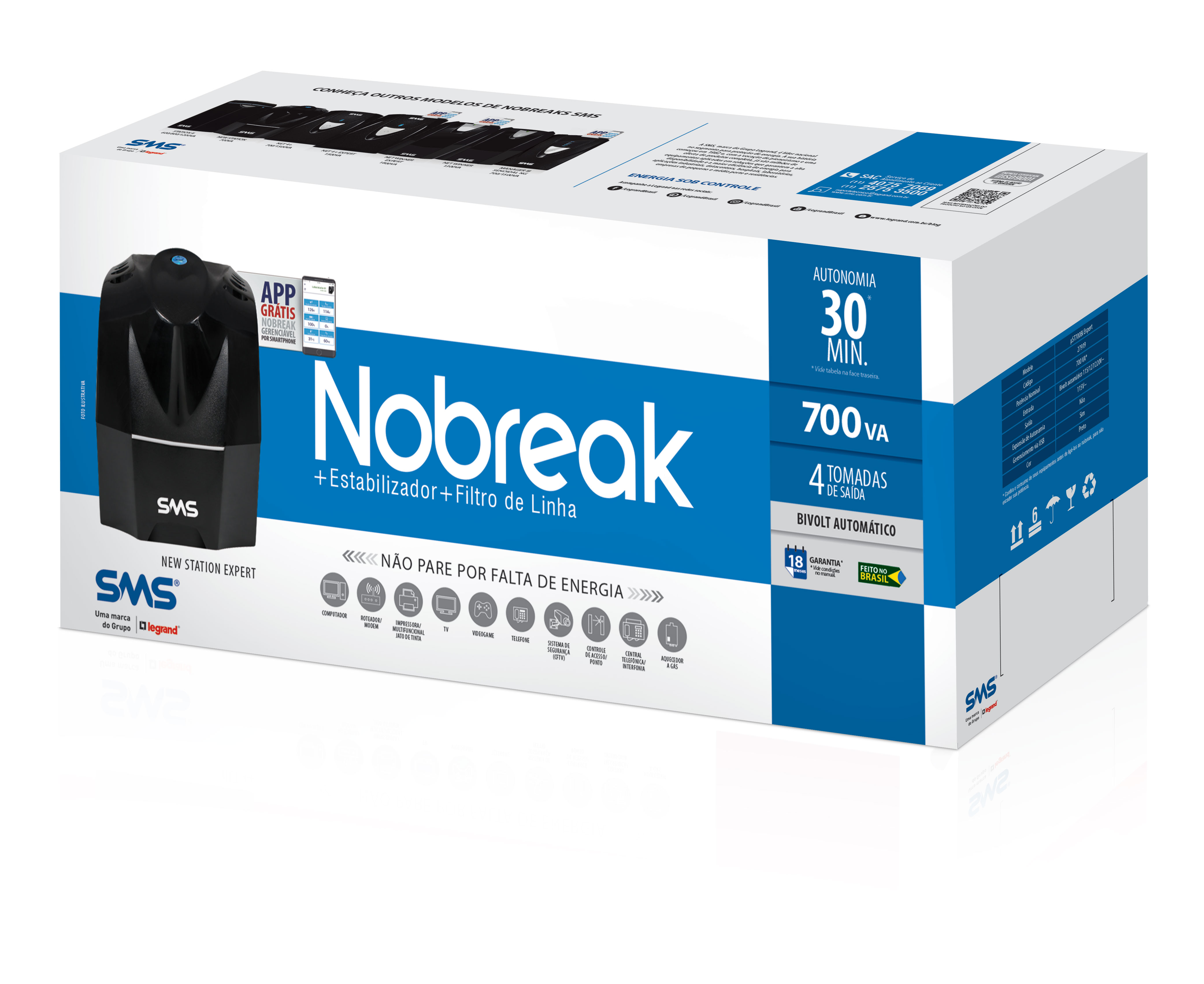 Acompanhe o funcionamento do seu nobreak e garanta a sua tranquilidade. O nobreak New Station Expert permite monitorar suas funções e as condições da rede elétrica através de um PC e Smartphone. Também é possível acompanhar suas condições de funcionamento com praticidade através de seu botão iluminado, aliando as últimas tendências de design, tecnologia e proteção em um só equipamento.