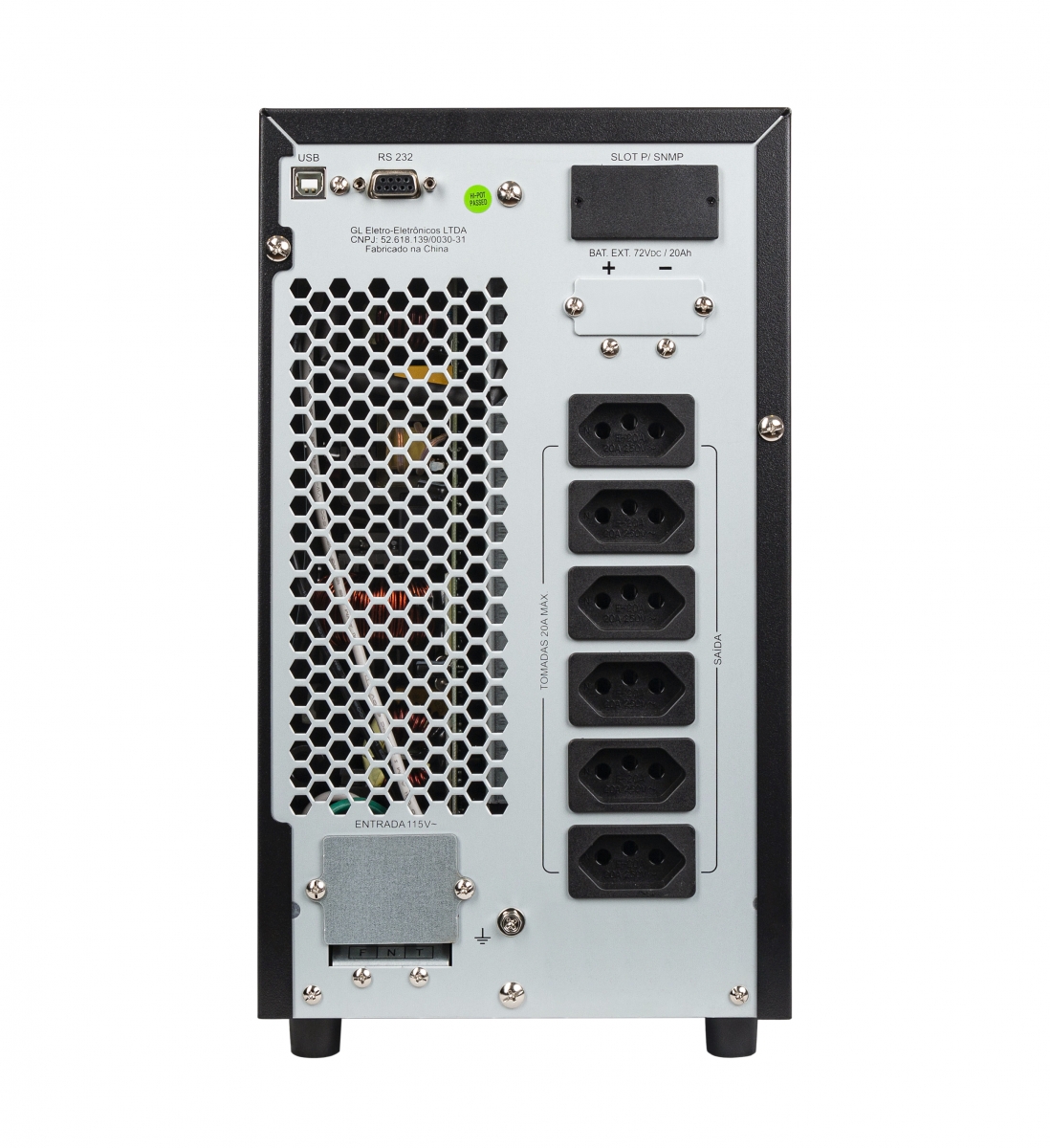| Conexão de saída | 5 tomadas NBR 14136 (10A) + 1 tomada NBR 14136 (20A) |